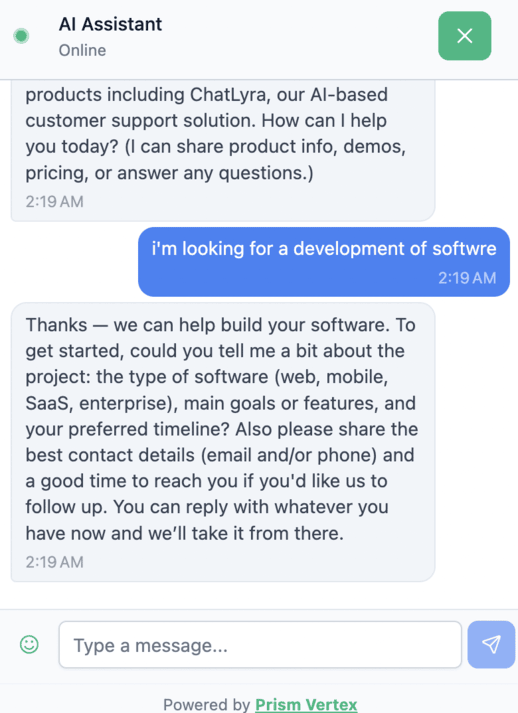 Join 5,000+ businesses using ChatLyra to automate support, capture leads, and provide 24/7 AI assistance.