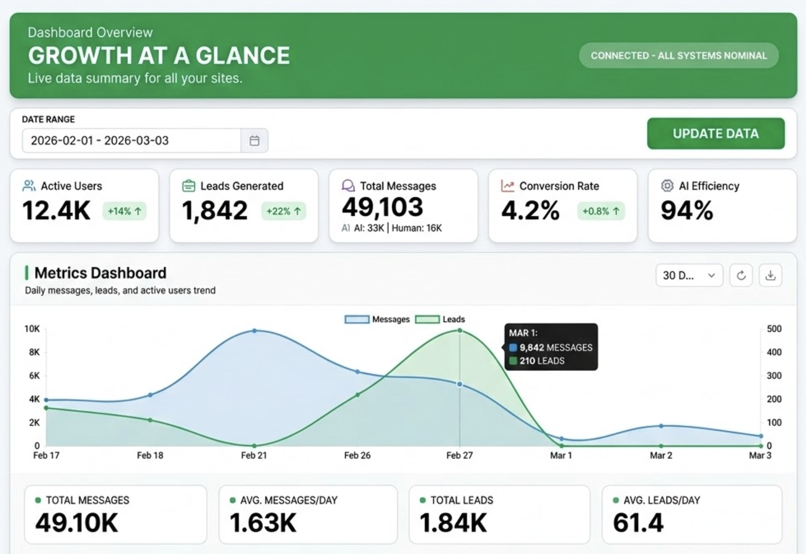 Seamlessly take over conversations when needed. Full control over AI responses.